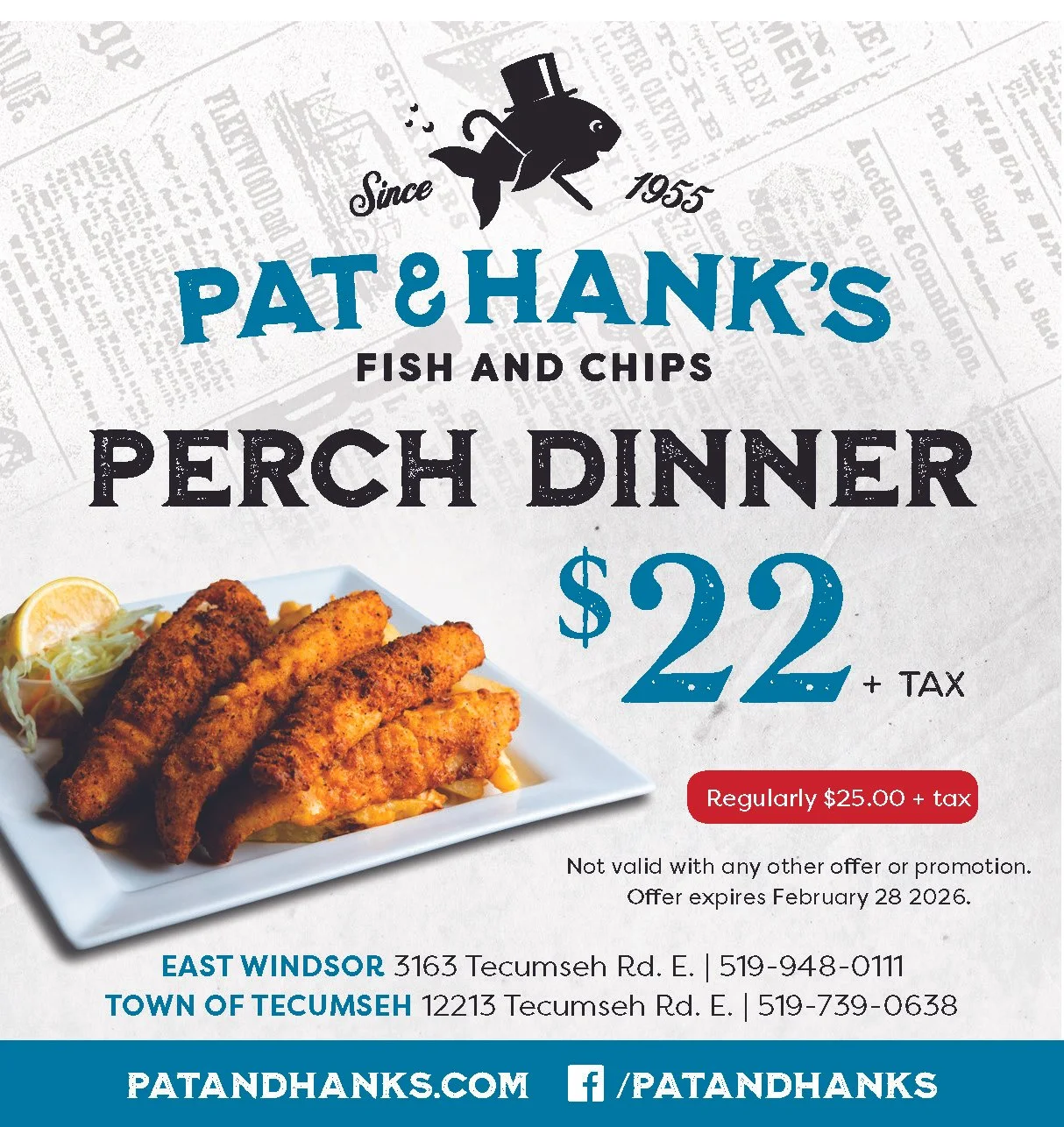Nestled in the heart of Southern Ontario, Pat & Hank’s Fish and Chips has become a staple of family nights in or out.